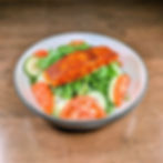 Grilled Cajun salmon filet— served with arugula, cucumber tomato, carrot, pickle red onion, soy sesame dressing, and sesame seeds.