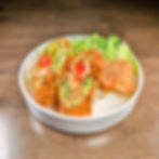 Grilled chicken, roasted tomato salsa, avocado, pickled red onions, mix grilled onions and bell peppers, jalapenos, sesame seeds and cilantro. Served with rice.